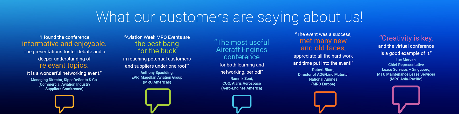 Step into the epicenter of aerospace innovation with Aviation Week Network's unrivaled event series, the cornerstone of Informa’s comprehensive aviation & aerospace portfolio. From globe-spanning MRO and AeroEngines conferences to cutting-edge Air Transport and Aerospace gatherings, we deliver unmatched opportunities to shape the future of aviation. Our events serve as launchpads for aerospace innovation, where industry leaders network, stakeholders connect, and breakthrough ideas take flight. Within the broader Informa family, Aviation Week Network events complement select specialized gatherings across multiple sectors of the industry. Together, these events create a powerful ecosystem for industry advancement and professional growth.